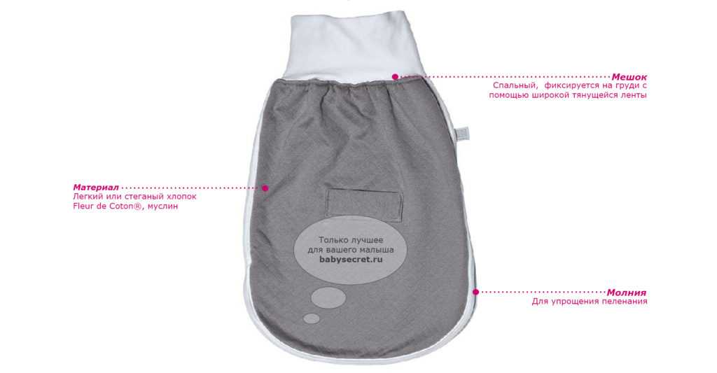 Уделите большое внимание составляющим мешка – они должны быть полностью неалллергенными! По температуре могут быть такие варианты: от 20˚С – хлопок; 17-20˚С – с небольшим утеплителем; ниже 16˚С – утепленные; очень теплые и стеганные варианты – отличный выбор для прогулок весной и осенью. Рекомендуемый вариант стирки таких вещей – автомат при 40˚С