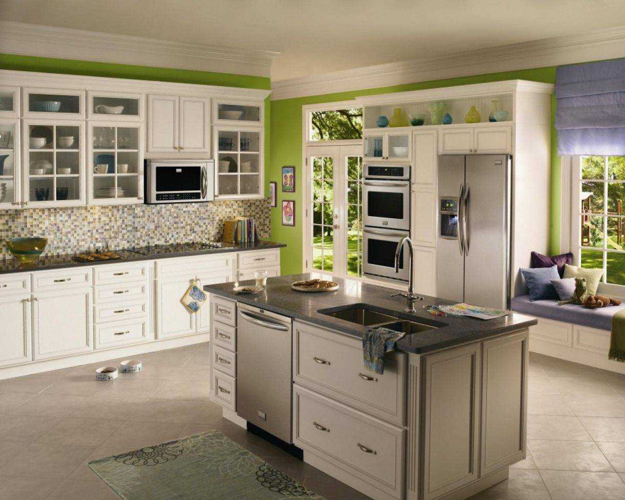 Внимание! Если вы планируете установить на кухне зеленую мебель, стены необходимо сделать спокойными и нейтральными. Идеальным вариантом станет бежевый, серый или белый цвета