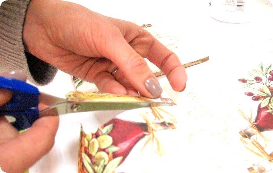 - ножницы (рекомендуется приобрести специальные ножницы для декупажа, но на первых порах в качестве альтернативы подойдут маникюрные ножницы с заостренными кончиками);