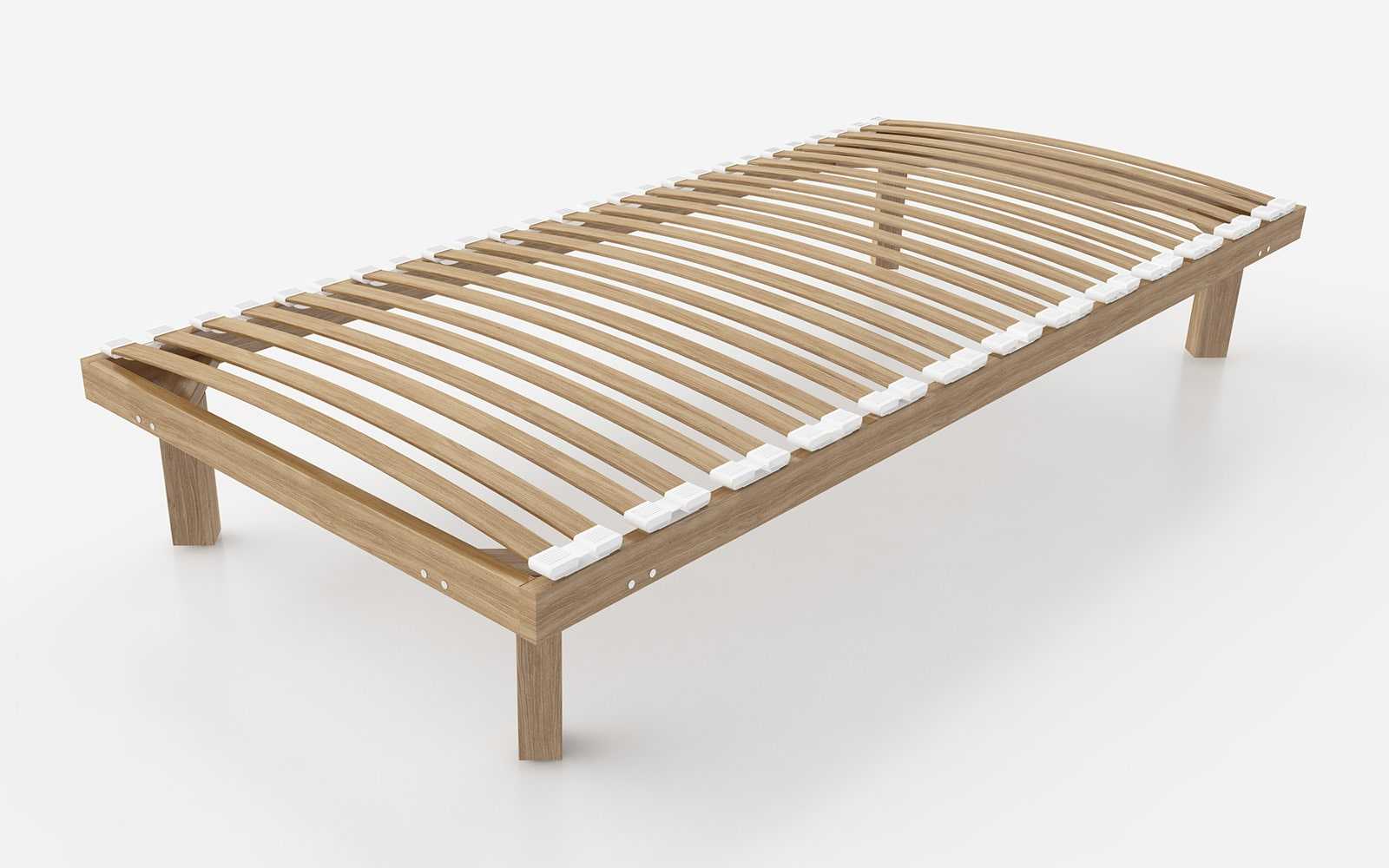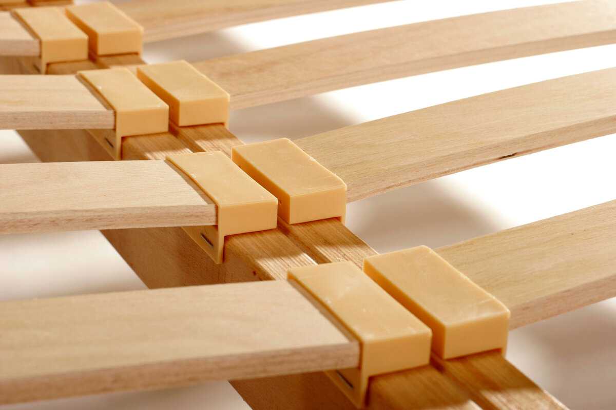 Могут быть узкими или широкими. Узкие, близко расположенные друг к другу, подходят для пружинных и не слишком жестких матрасов. Выдерживают больший вес. Ламели изготавливают из березы, ореха, бука. Оптимальными по соотношению цены и качества являются березовые изделия. Стандартное основание включает от 13 до 15 ламелей на одно спальное место. Их толщина составляет 8–10 мм, ширина – 5–7 мм, длина зависит от ширины кровати. Расстояние между ламелями не должно быть более их ширины. Для пружинного матраса выбирают конструкцию с широкими рейками |