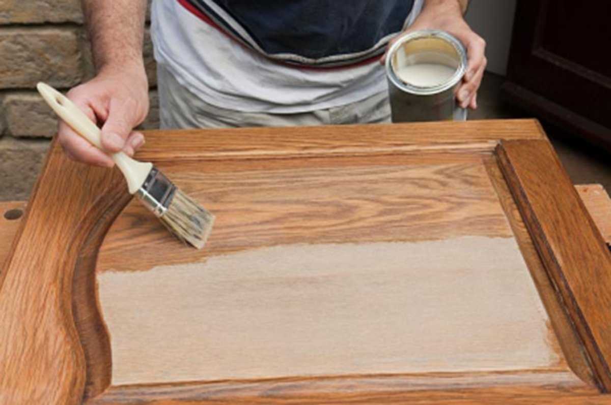 Перед обработкой частей нужно разобрать конструкцию и открутить всю фурнитуру. После этого снимите остатки первоначального покрытия посредством растворителя и шпателя. Старый слой может отходить непросто. В таком случае пропитайте доску растворителем и дайте немного набухнуть. Затем шпателем снимите отслоившийся мусор.