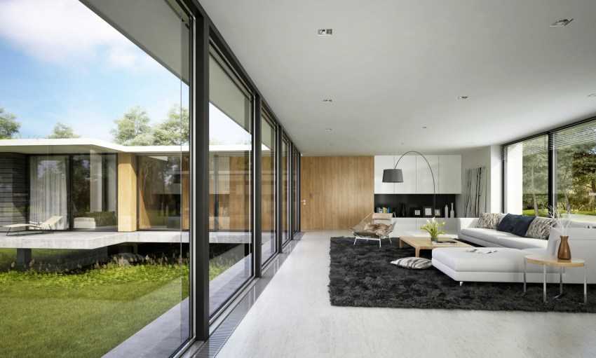 В интерьере маленькой гостиной неплохо использовать больше стекла