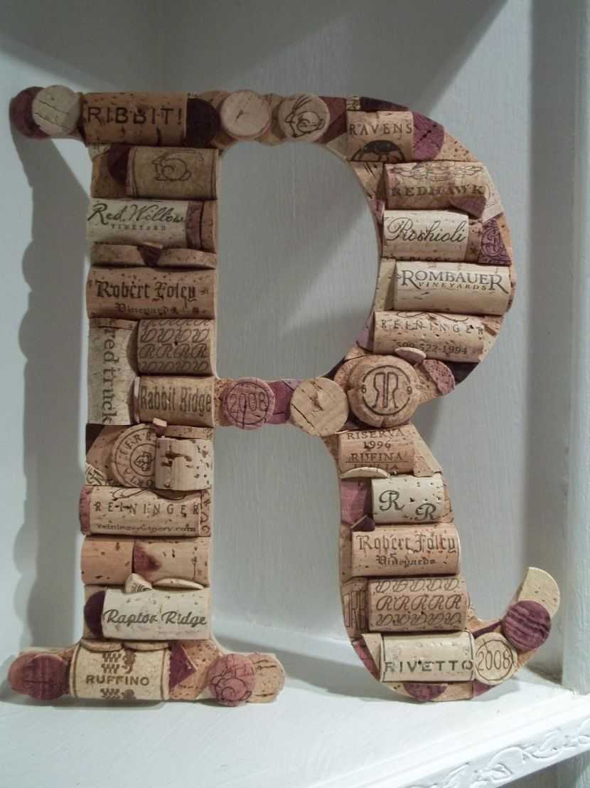 Если у Вас имеется много пробок, то можно сложить из них слова, небольшие картины и объемные панно, склеив их друг с другом или на катонную (деревянную) основу.