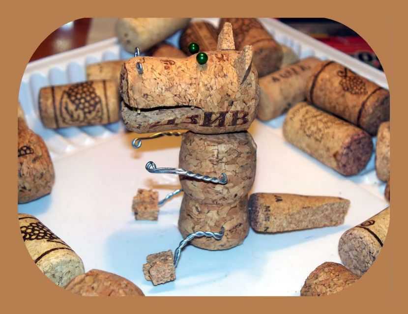 Поделка «петушок» тоже занимательна, но требует некоторых навыков и времени. Для этого нужно сделать фанерную основу, прогрунтовать её, нанести контур и при помощи клея зафиксировать пробки по схеме изображения. Получится оригинальное творение.