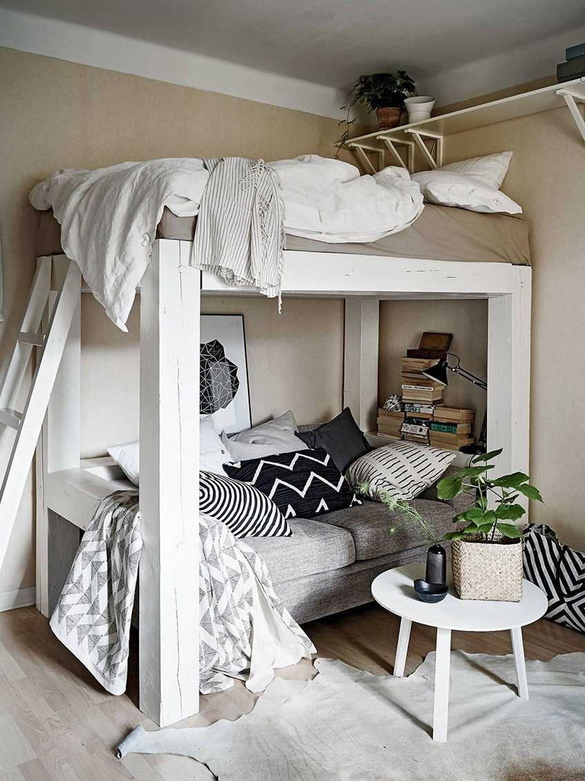 Какой бы маленькой не была комната, настоящую кровать не сможет заменить конструктор. Чтобы позволить себе поместить полноценную мебель рассмотрим ухищрения для увеличения пространства.