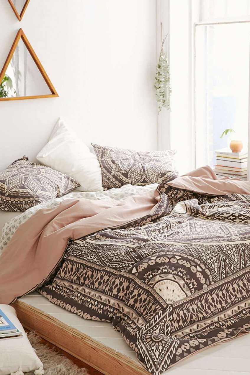 Постельное белье и покрывало на кровати лучше брать светлых оттенков, также либо однотонные, либо с мелким узором. Подушки, наоборот, могут быть яркими, с принтами и акцентами.