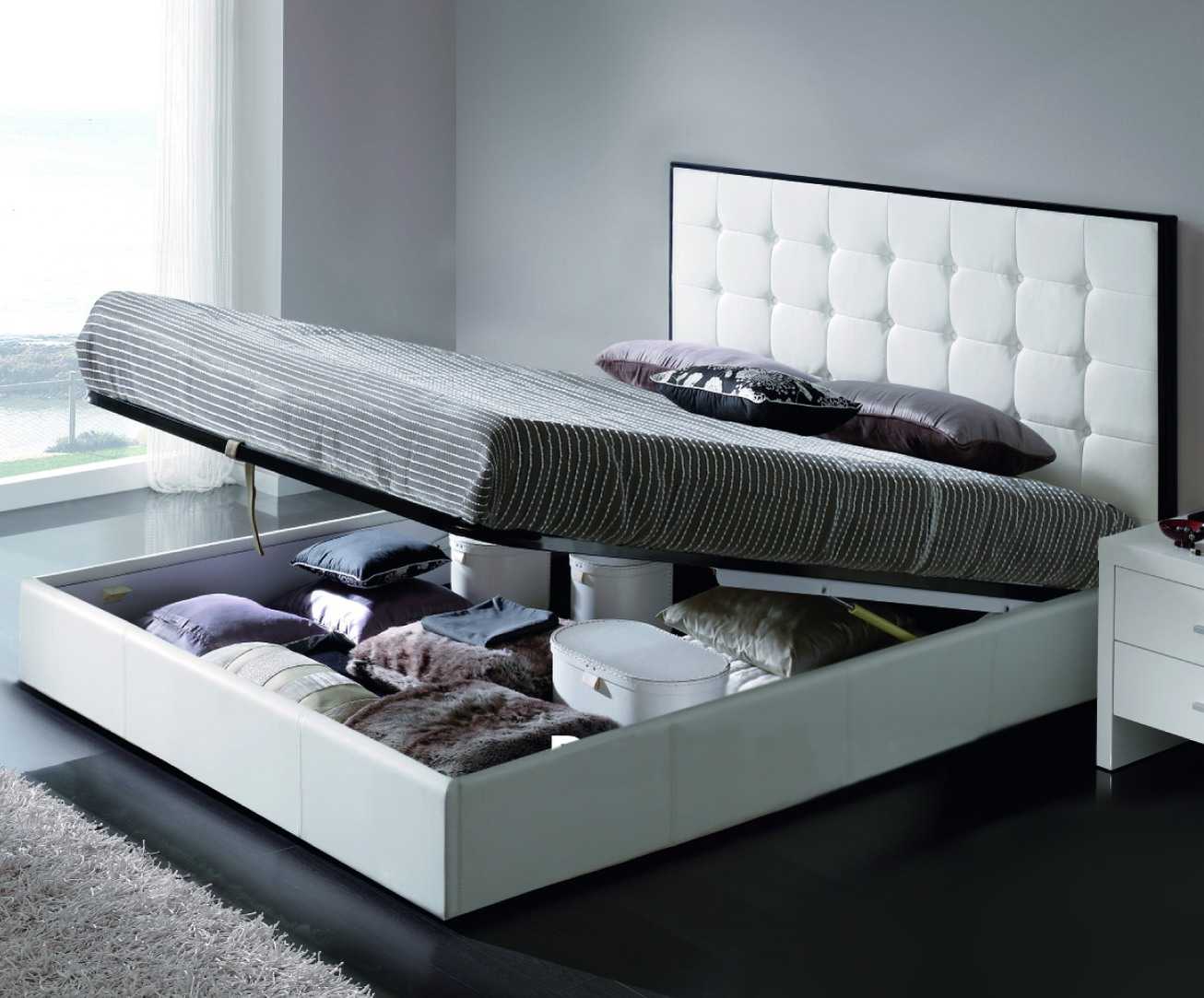 Если вам просто необходимо наличие в спальне двуспальной кровати, то её лучше поставить на небольшой подиум, под которым можно устроить удобные ящики для хранения постельного белья. Это будет оптимальным вариантом, если у вас мало места для размещения большого бельевого шкафа или комода.