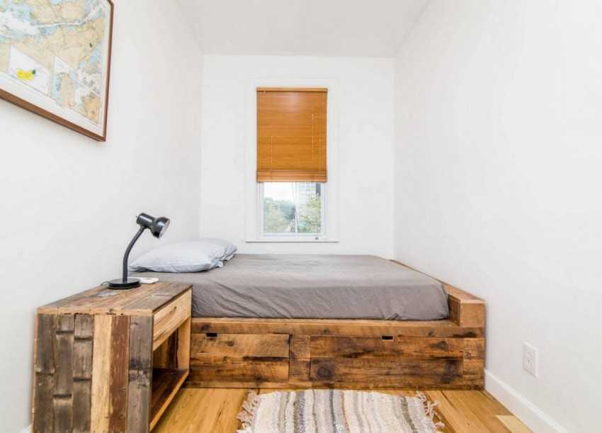 деревянная двуспальная кровать в маленькой спальне для подростков