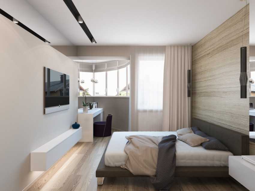фото современного интерьера небольшой спальни с перегородкой, кабинетом и окнами