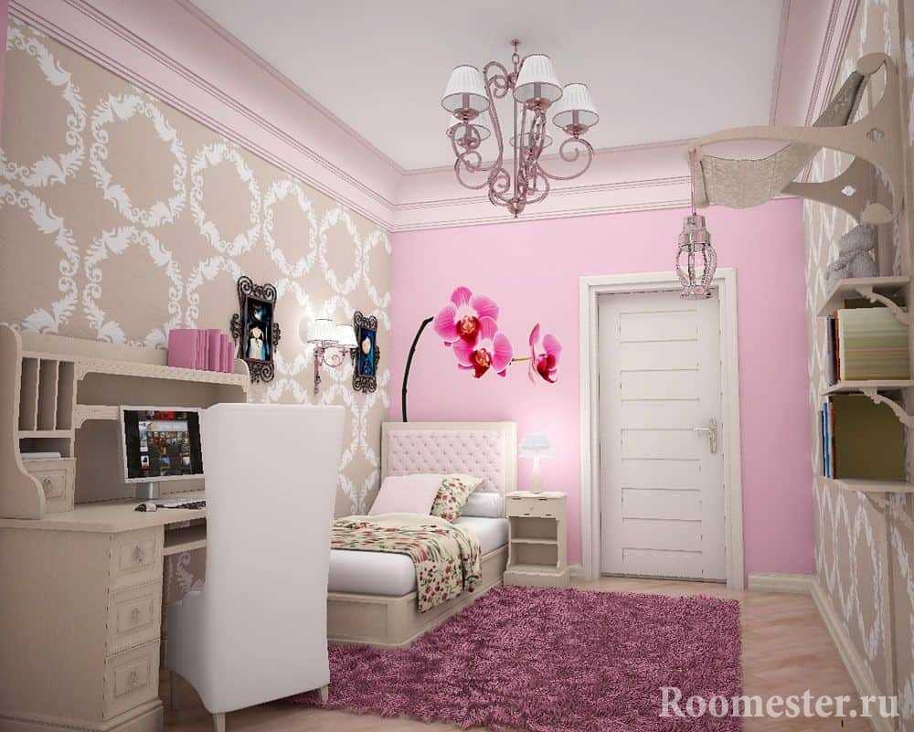 Пожалуй, самый главный вопрос в этом случае – это правильный подбор цвета. Не рекомендуем вам использовать чрезмерно яркие оттенки для полов и стен, ведь ваша дочь уже выросла из того возраста, когда всё яркое было ей интересно. Наверняка теперь она пожелает использовать более спокойные и нежные тона: бежевый, мятный, персиковый, нежно-голубой.