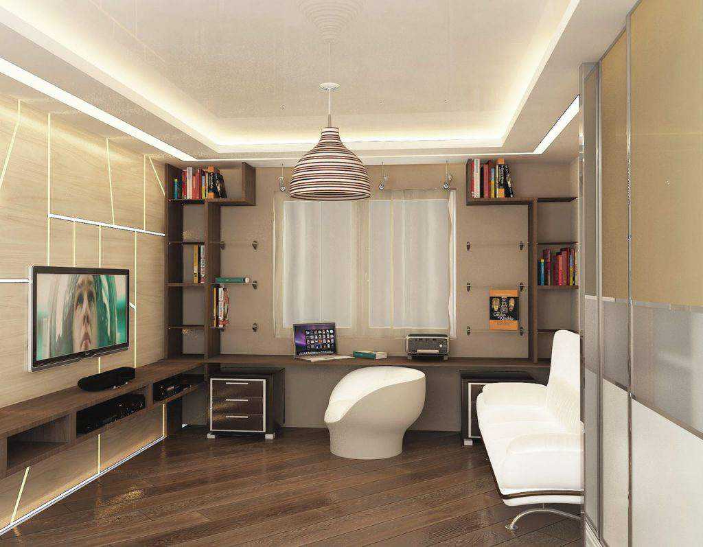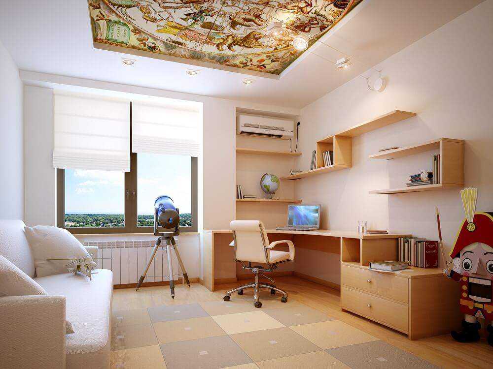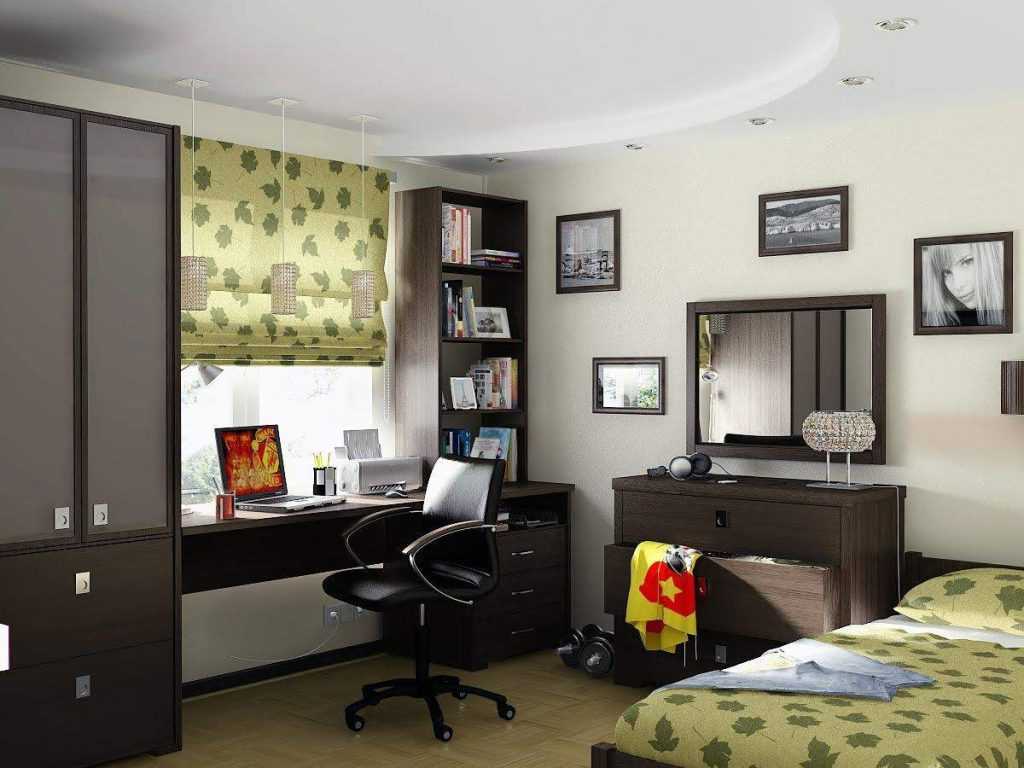 Учитывая все функции, которые призвана исполнять эта комната, необходимо позаботиться о правильной меблировке. В комнате обязательно должно быть рабочее место, кровать и платяной шкаф. Под рабочим местом подразумевается стол, удобный для работы за компьютером, учебы и творчества. Хорошо, если он будет с ящиками, такой прием поможет держать в одном месте все письменные и художественные принадлежности.