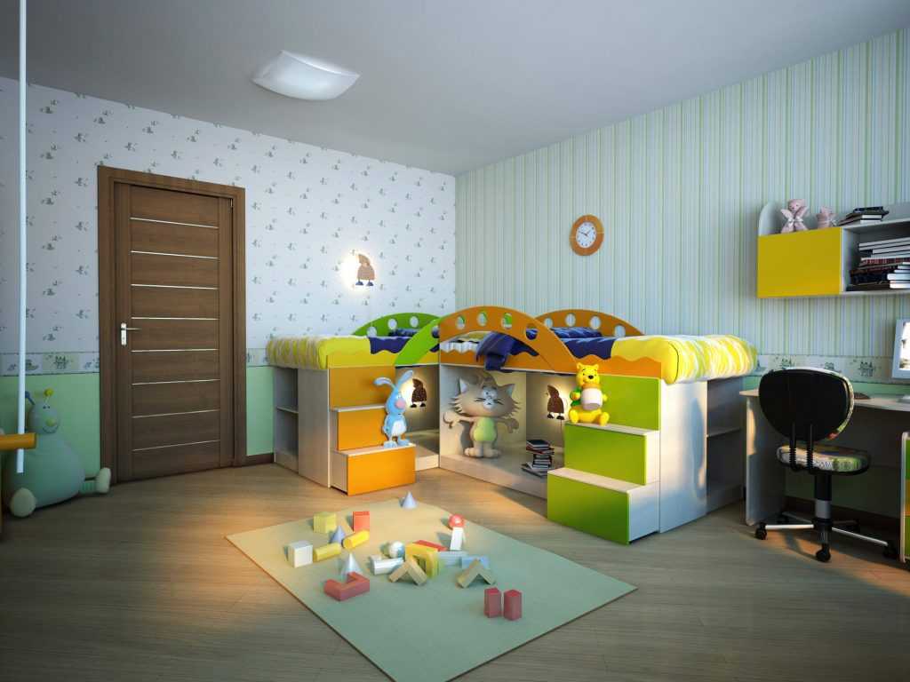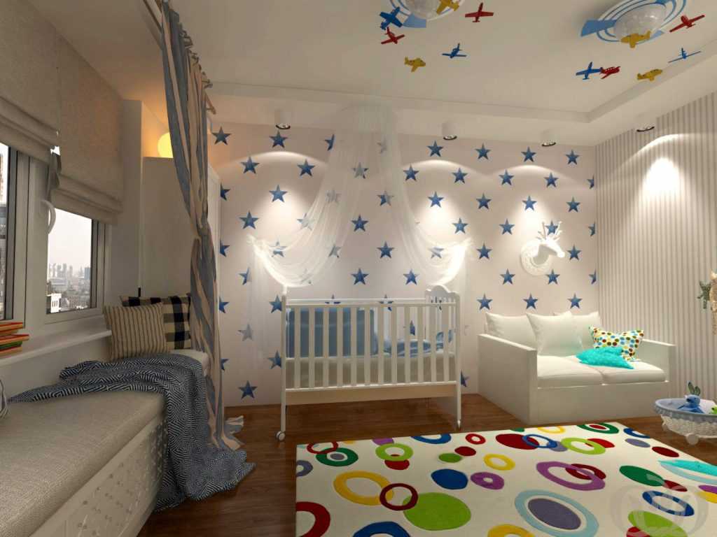 быть игрушки и наклейки на стенах. А на пол разместить теплый ковер.