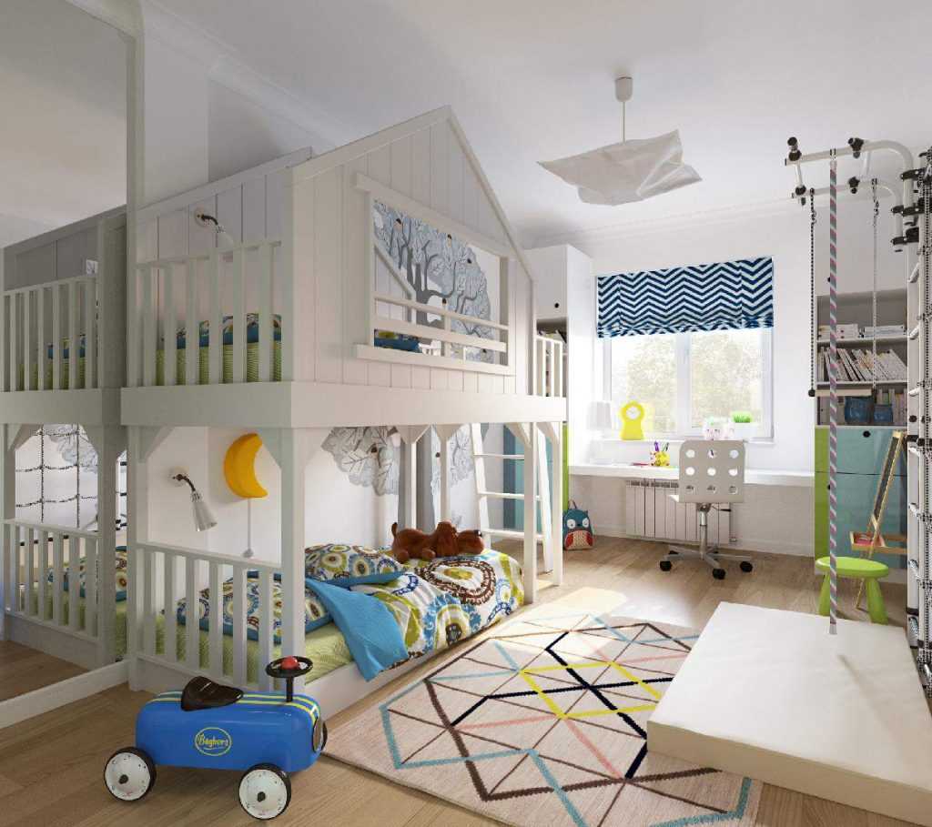 Каждый ребенок мечтает о большой просторной комнате. Ведь это прекрасная возможность организовать не только необходимый функционал – кровать, стол, шкаф, диван, стеллажи и полки, но еще и выделить место для игровой зоны.
