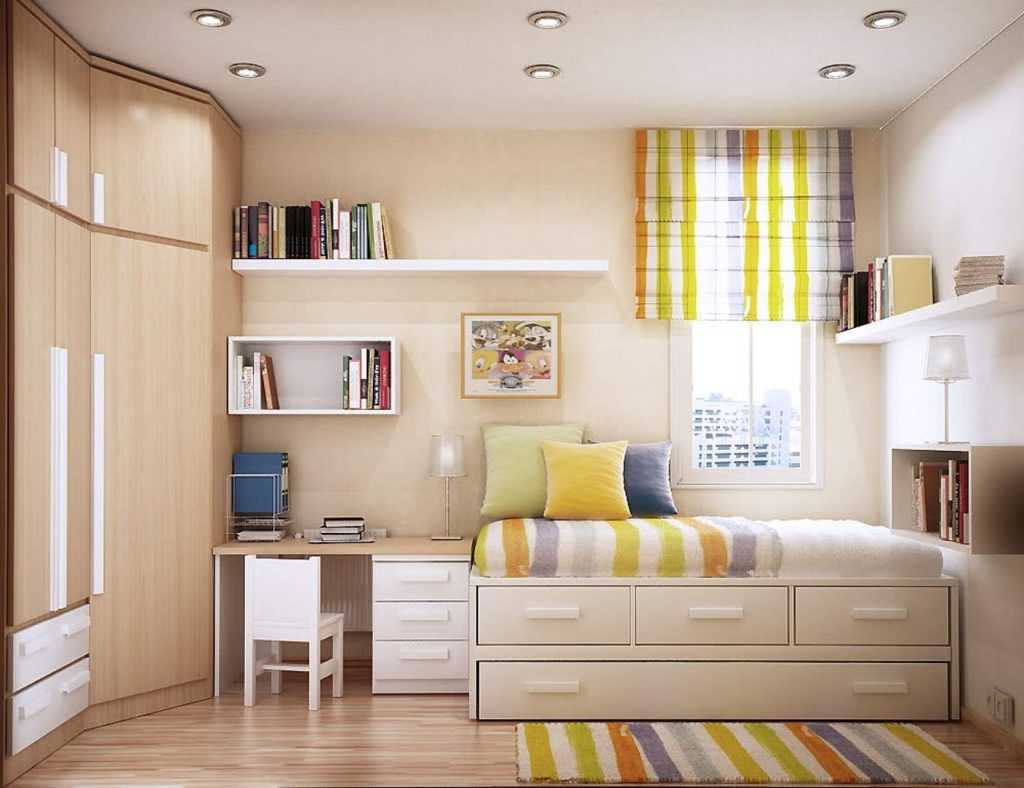 Миниатюрная комнатка – это еще не приговор. Для комфорта вполне хватит кроватки, столика и шкафа. Чаще всего юные красавицы предпочитают светлые оттенки, которые, как известно, визуально расширяют пространство. Поэтому комната вовсе не будет создавать впечатление унылой и тесной каморки.