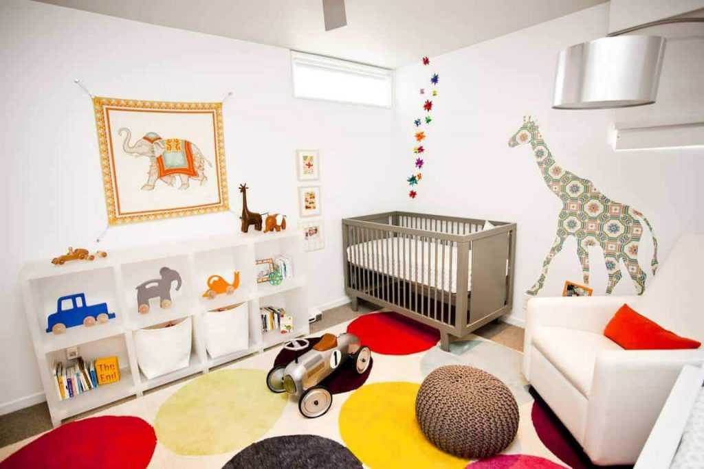 Рекомендуется делать комнату максимально простой и минималистичной, а с возрастом добавлять более сложные предметы, игрушки и более яркие краски в дизайн детской.
