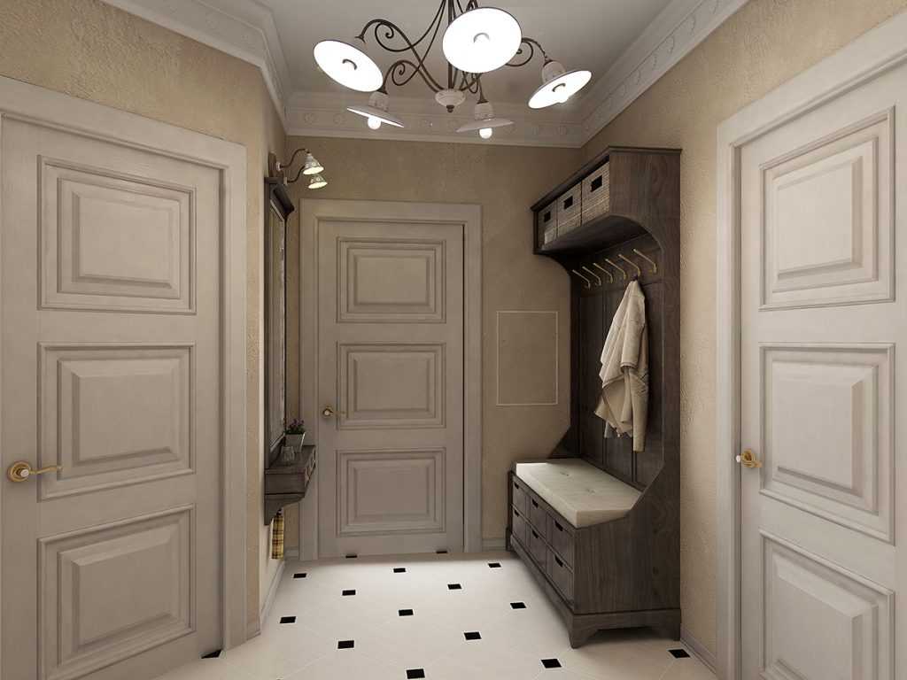 Классический. Здесь дизайнеры советуют использовать бежевую палитру и золотистый цвет. В качестве декора могут выступать кованые элементы, резьба, инкрустация. Классическая прихожая будет выглядеть роскошно и изысканно.