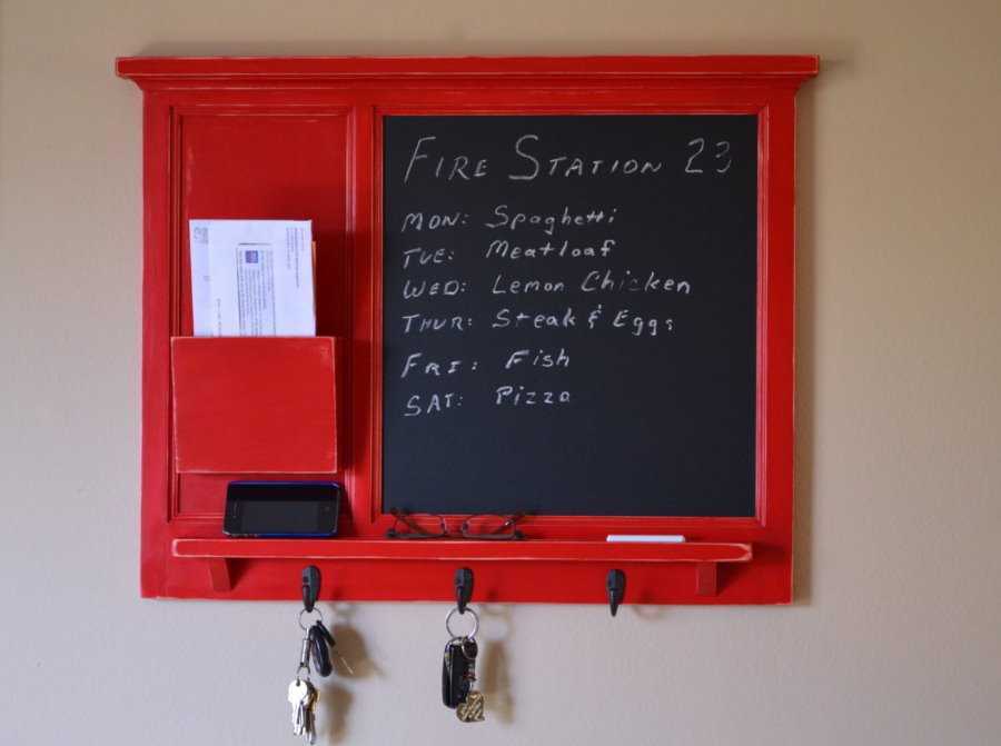 Такую доску для заметок, совмещенную с ключницей, можно сделать своими руками из дерева