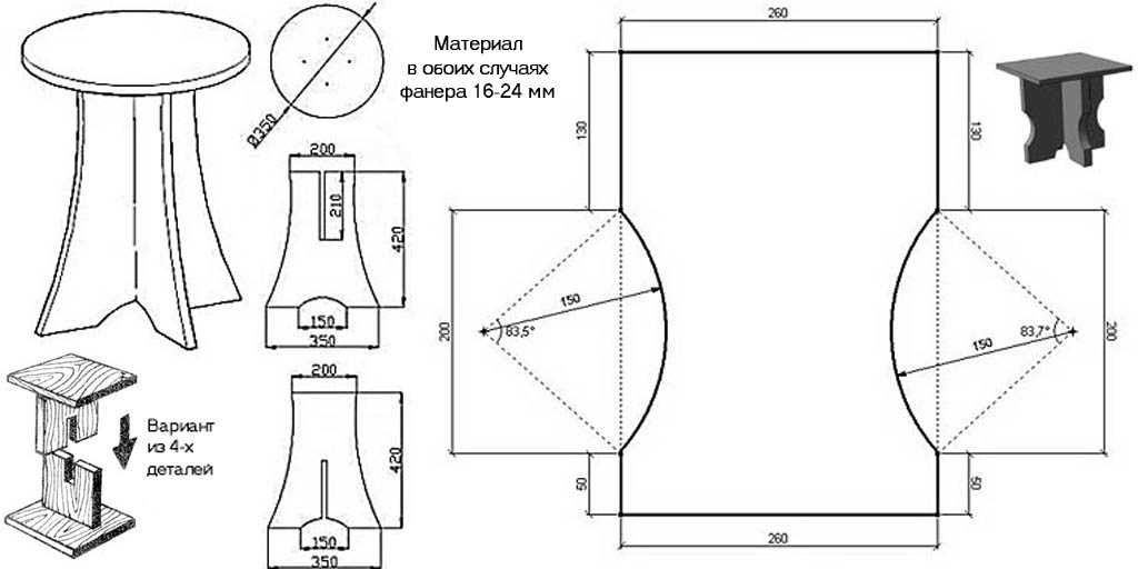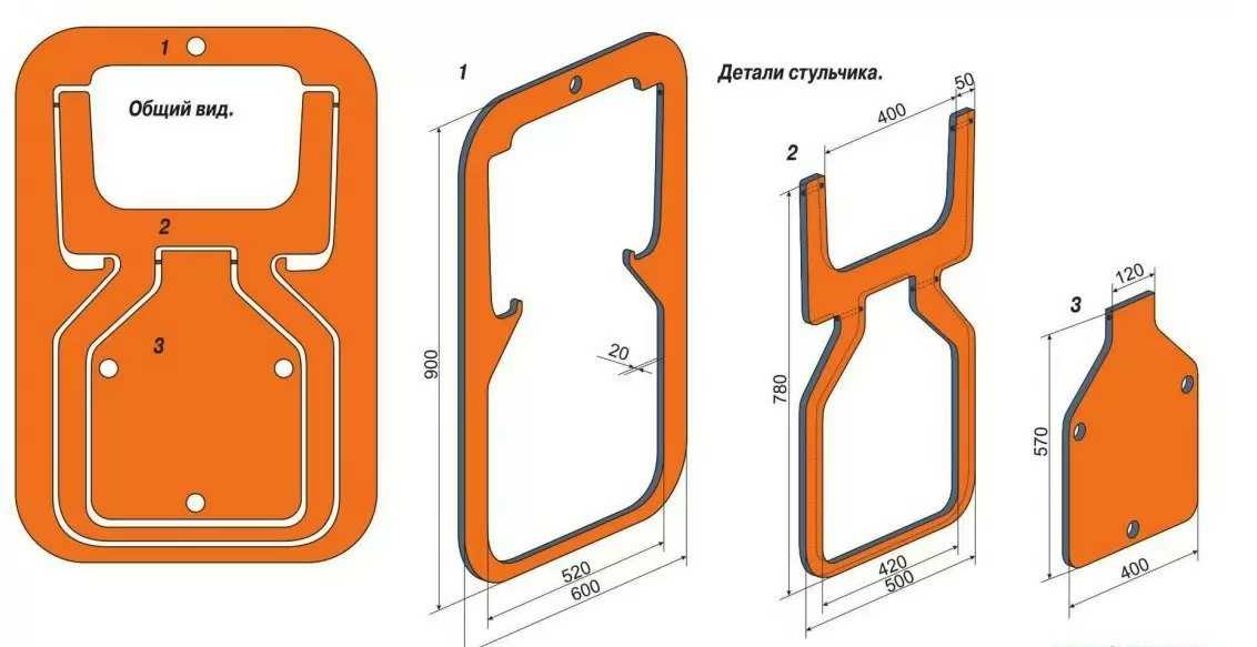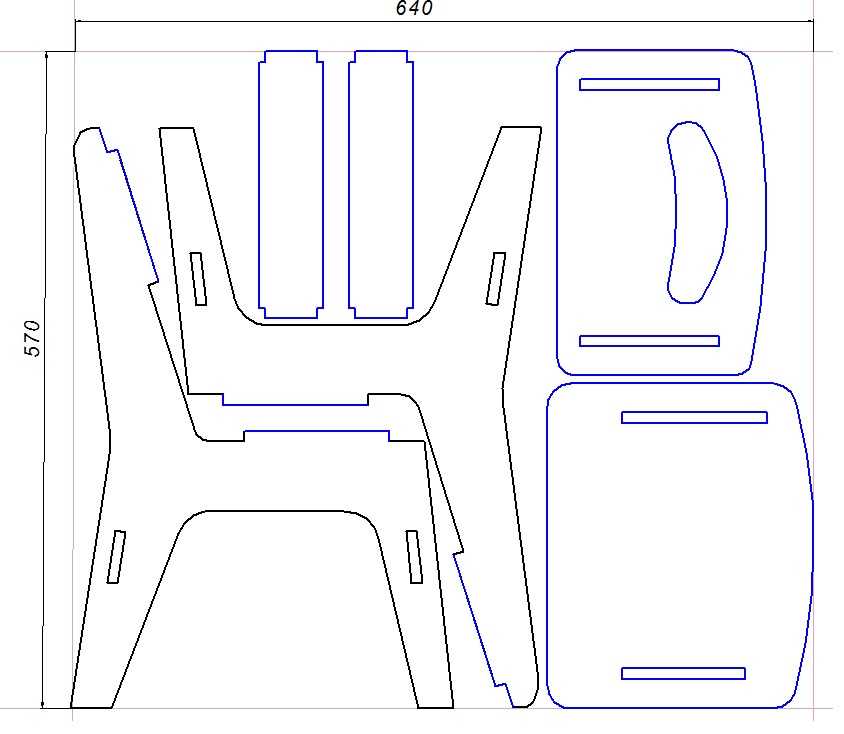 - Прорисовка составных частей фанерного стула в схематичном отображении.