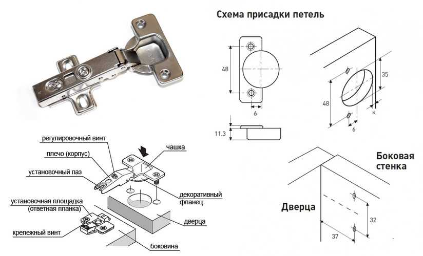 Как установить мебельные петли, шаблоны, схемы разметки на накладной, внутренний или угловой шкаф