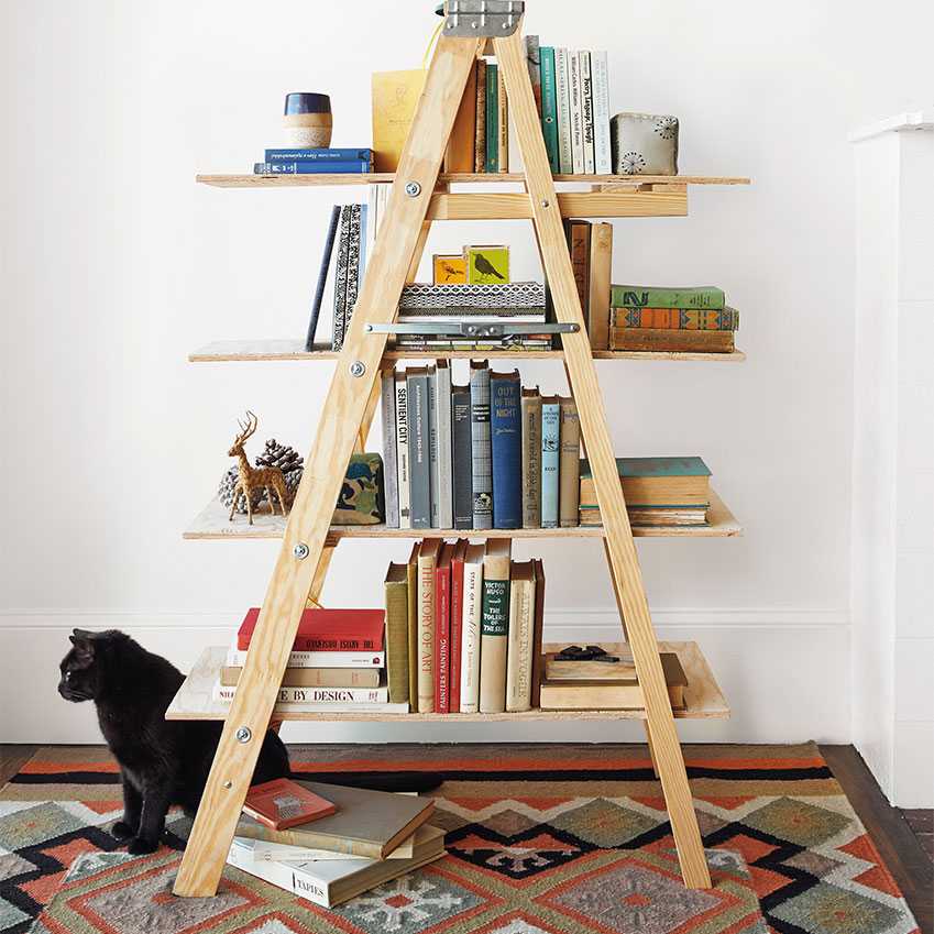 Мебель можно изготовить из разнообразных подручных средств и предметов , например, как этот стеллаж для книг из лестниц