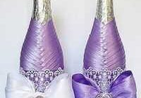 Бутылки шампанского, украшенные атласными лентами как «Он» и «Она», становятся неотъемлемым атрибутом свадебного торжества.