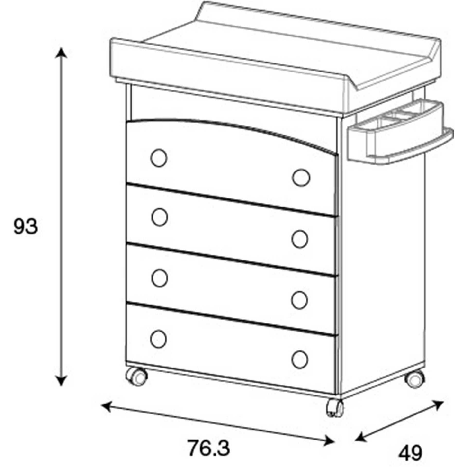 Высота комода остается стандартной, основной уровень поддерживается в пределах 80–110 см, Глубина подбирается с учетом роста ребенка, в разложенном состоянии длина пеленатора должна составлять не менее 70 см (оптимально 90–100 см). Ширина комода может быть любой, но модели в диапазоне от 80 до 100 см признаны самыми удобными.