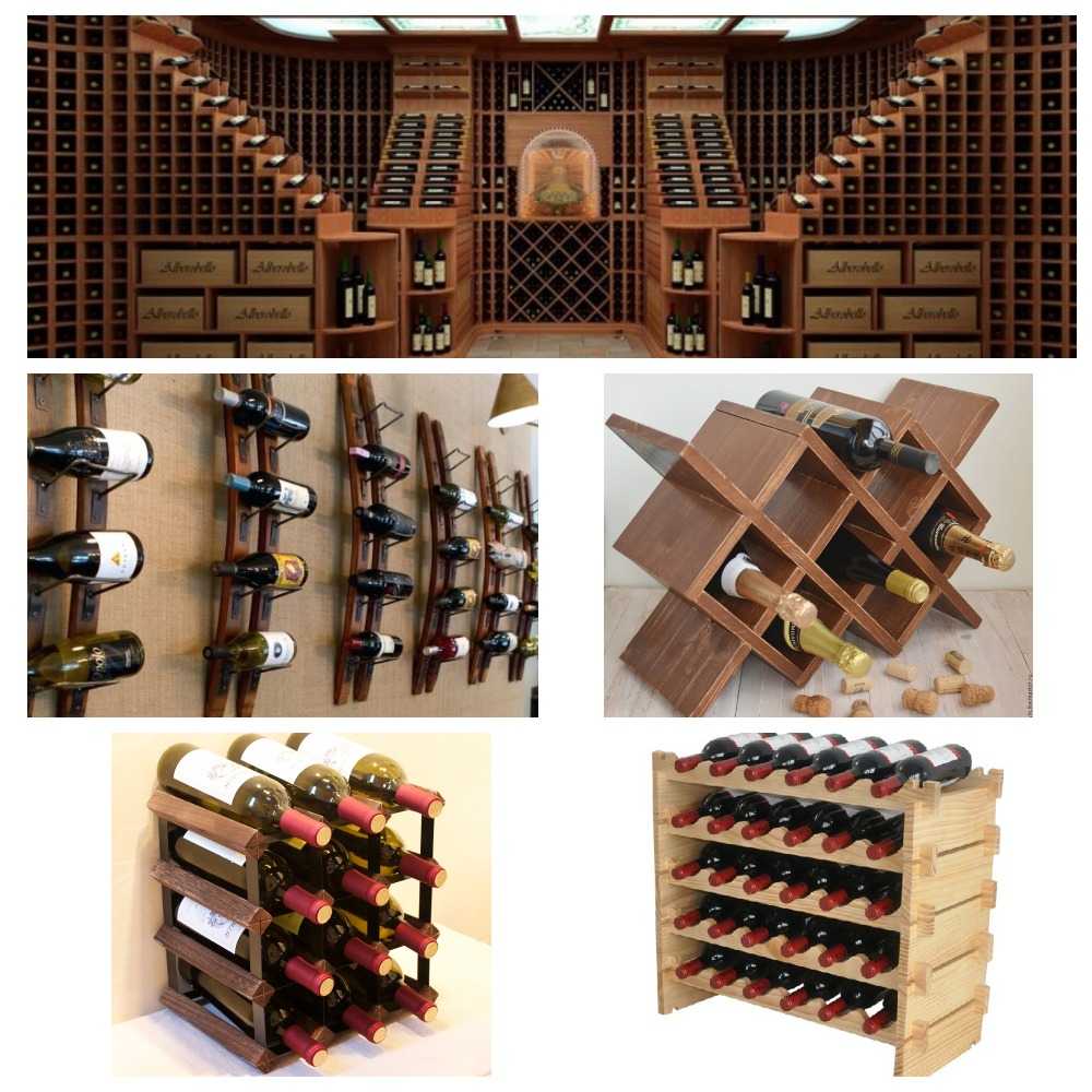 В зависимости от индивидуальных предпочтений, стеллаж для вина может иметь различную конструкцию, цветовую гамму и дизайн. Эти параметры подбираются в соответствии с количеством хранимых бутылок, а также стиля оформления интерьера. Самыми популярными вариантами являются: