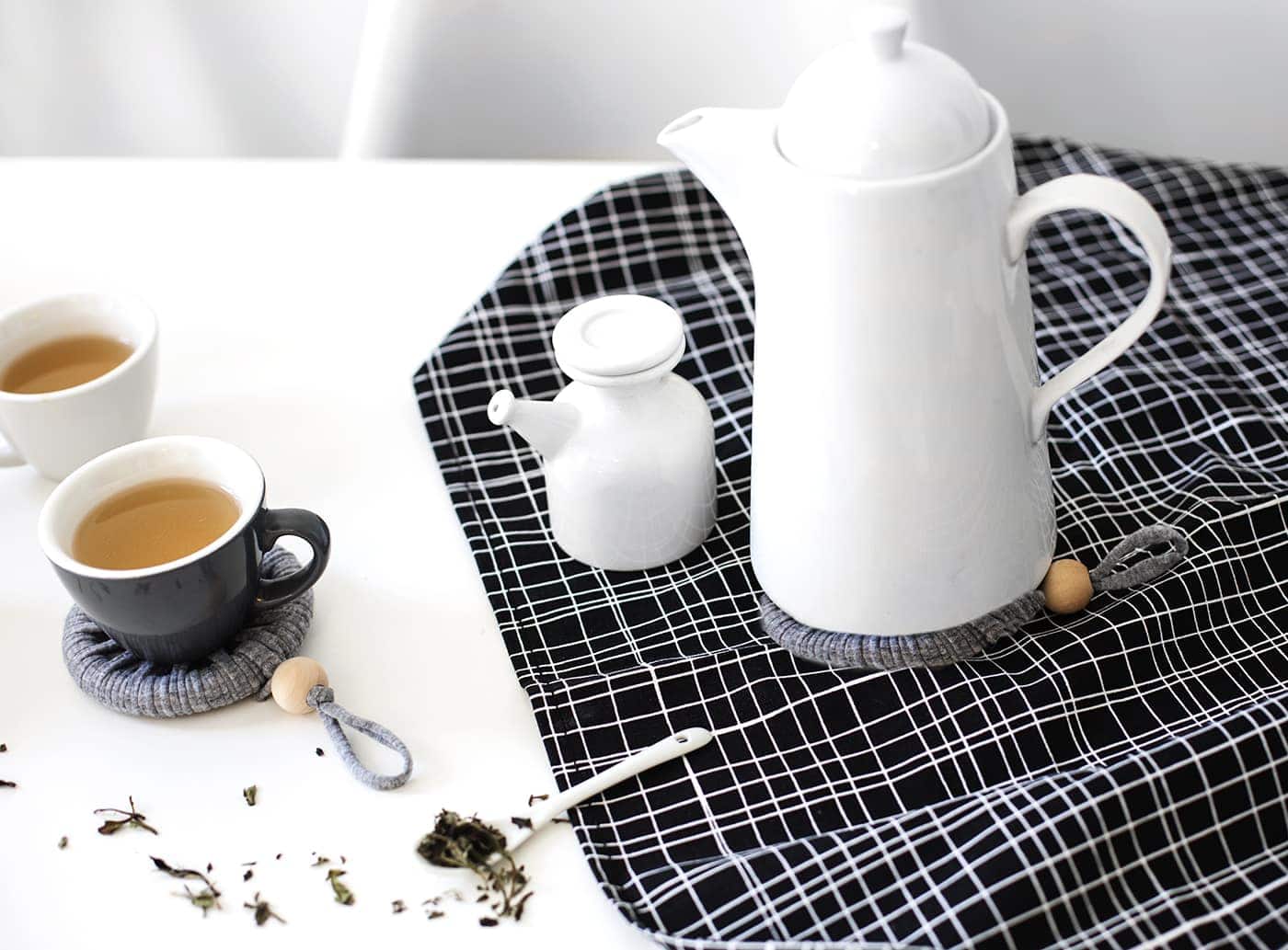 - Текстильные подставки достаточно периодически стирать в машинке или ручным способом. Уход за ними не составляет труда. Но если вы пролили на ткань горячий напиток, то есть риск так и не избавиться полностью от следов.
