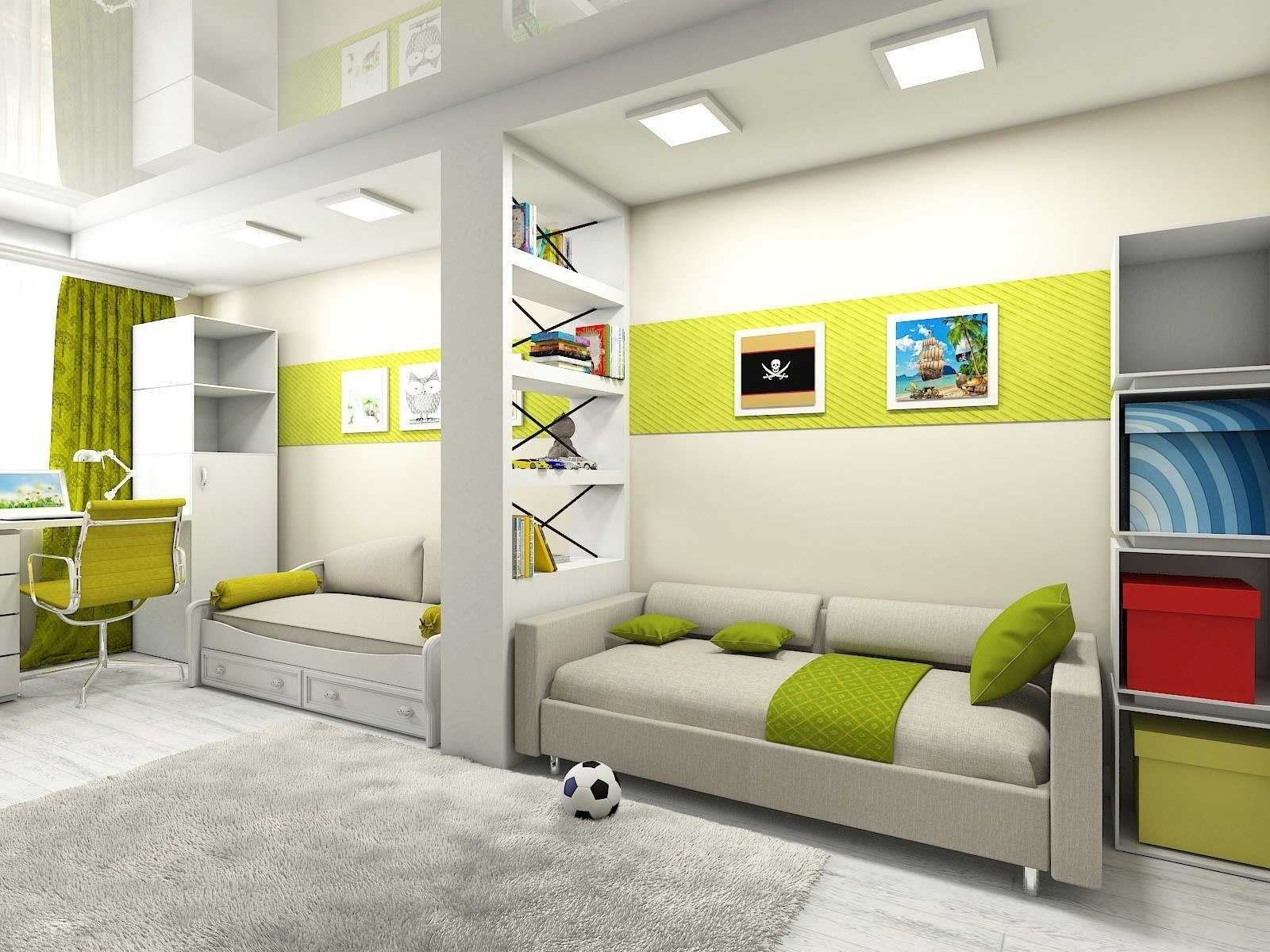 Для комфортного проживания в комнате ее необходимо визуально разделить на различные территории. Зоны, в зависимости от их предназначения в детской, нуждаются в наполнении элементами мебели для игры, сна, учебы, хранения одежды и игрушек. Для разделения пространства можно использовать гипсокартонные перегородки.