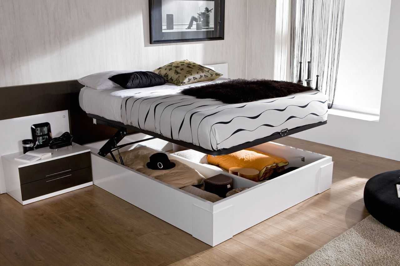 Если комната маленькая, можно использовать кровать-подиум, часто такие модели предусматривают дополнительные места хранения в виде ящиков внизу, или диван, кровать-трансформер.