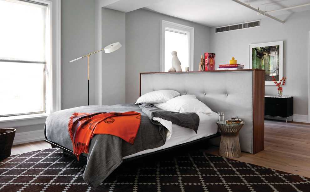 Объединение гостиной и спальни возможно, если выделить особый участок для сна и замаскировать постель.