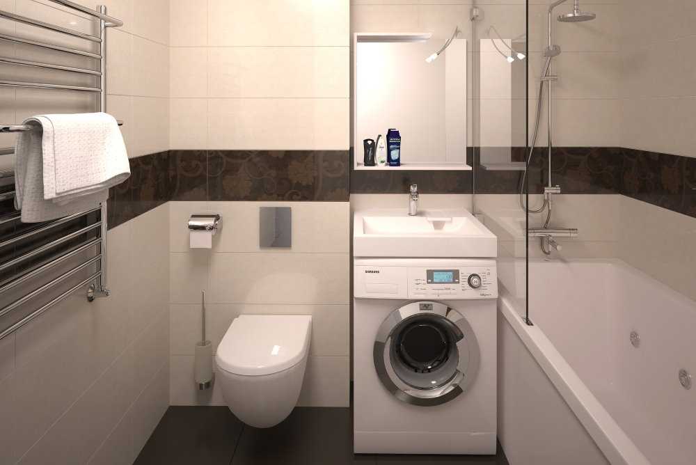 В ванной небольшого размера целесообразно использовать компактную бытовую технику, например, при выборе стиральной машинки стоит отдать предпочтение модели с накладной раковиной