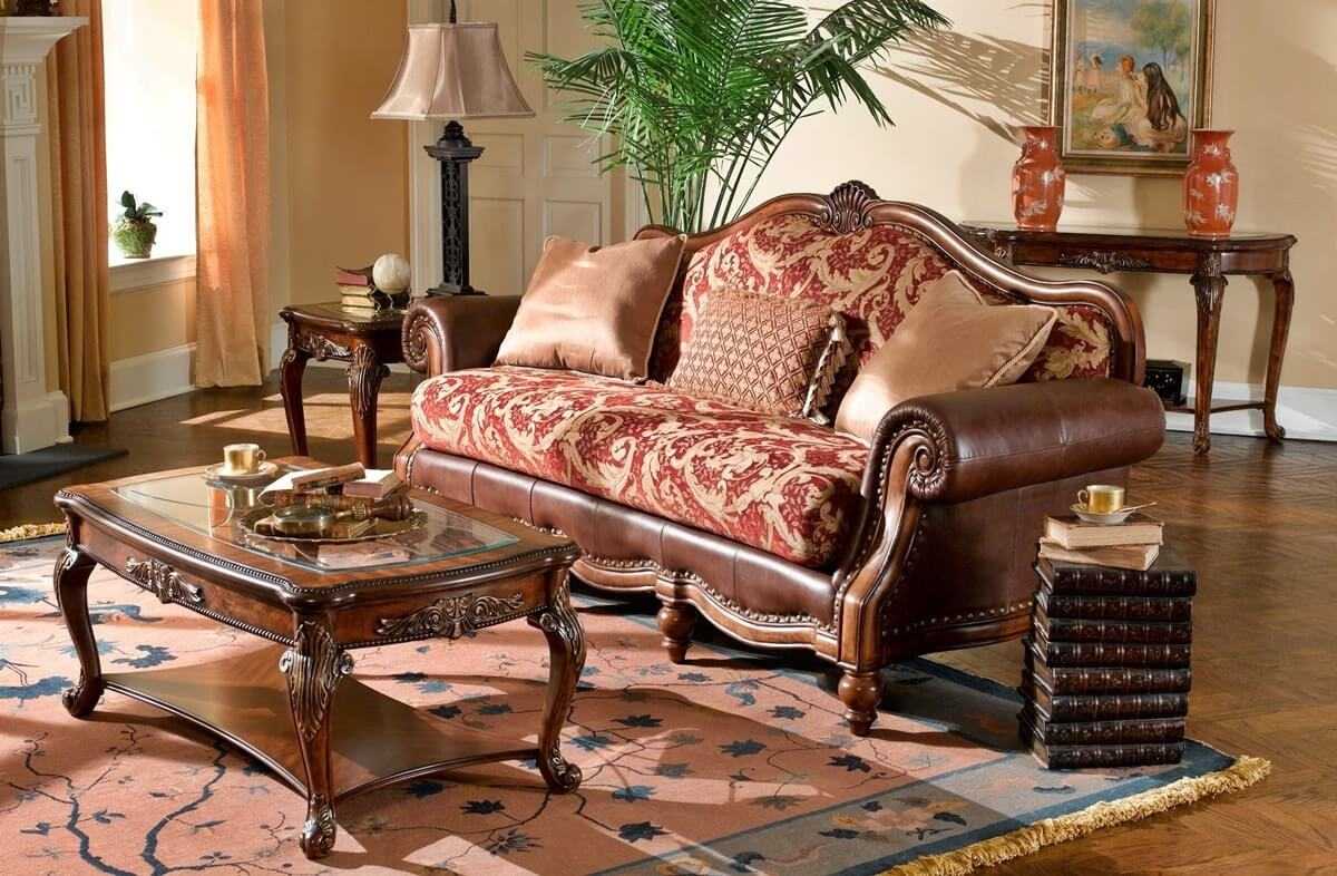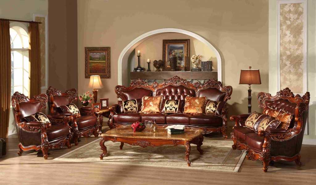 Для оформления гостиной хорошо подойдут резной журнальный столик, кресла и диваны, подлокотники и ножки которых оформлены с применением фигурной обработки.