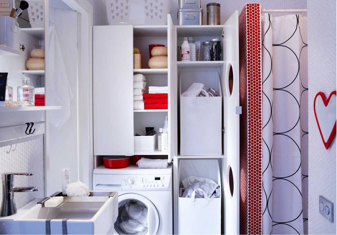 сохранение порядка и легкость уборки помещения. Аккуратное расположение техники внутри шкафа упрощает процесс влажной уборки в ванной или на кухне. Хозяйки могут складывать на полки различные предметы личной гигиены, средства бытовой химии.