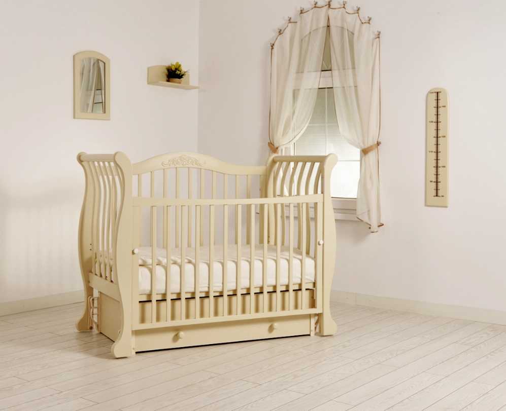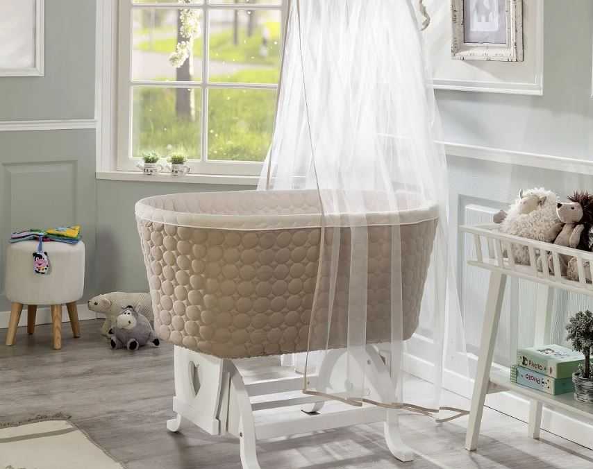 - Самая первая кроватка в жизни малыша — люлька. Такая модель используется до полугода, потом кроха из нее вырастает. Ширина люльки меньше 60 см, а длина не достигает одного метра.