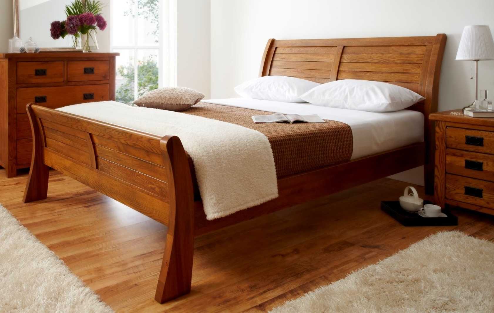 Для любителей натуральных материалов, желающих сэкономить, изготавливают кровати из сосны. Она мягче, чем благородные сорта древесины, но тоже смотрится богато и изысканно. Но стоит помнить, что от удара на такой кровати могут образоваться неровности, поэтому обращаться с ней следует бережно. При аккуратной эксплуатации мебель из сосны прослужит долго. Благодаря доступной стоимости такие кровати пользуются высоким спросом.