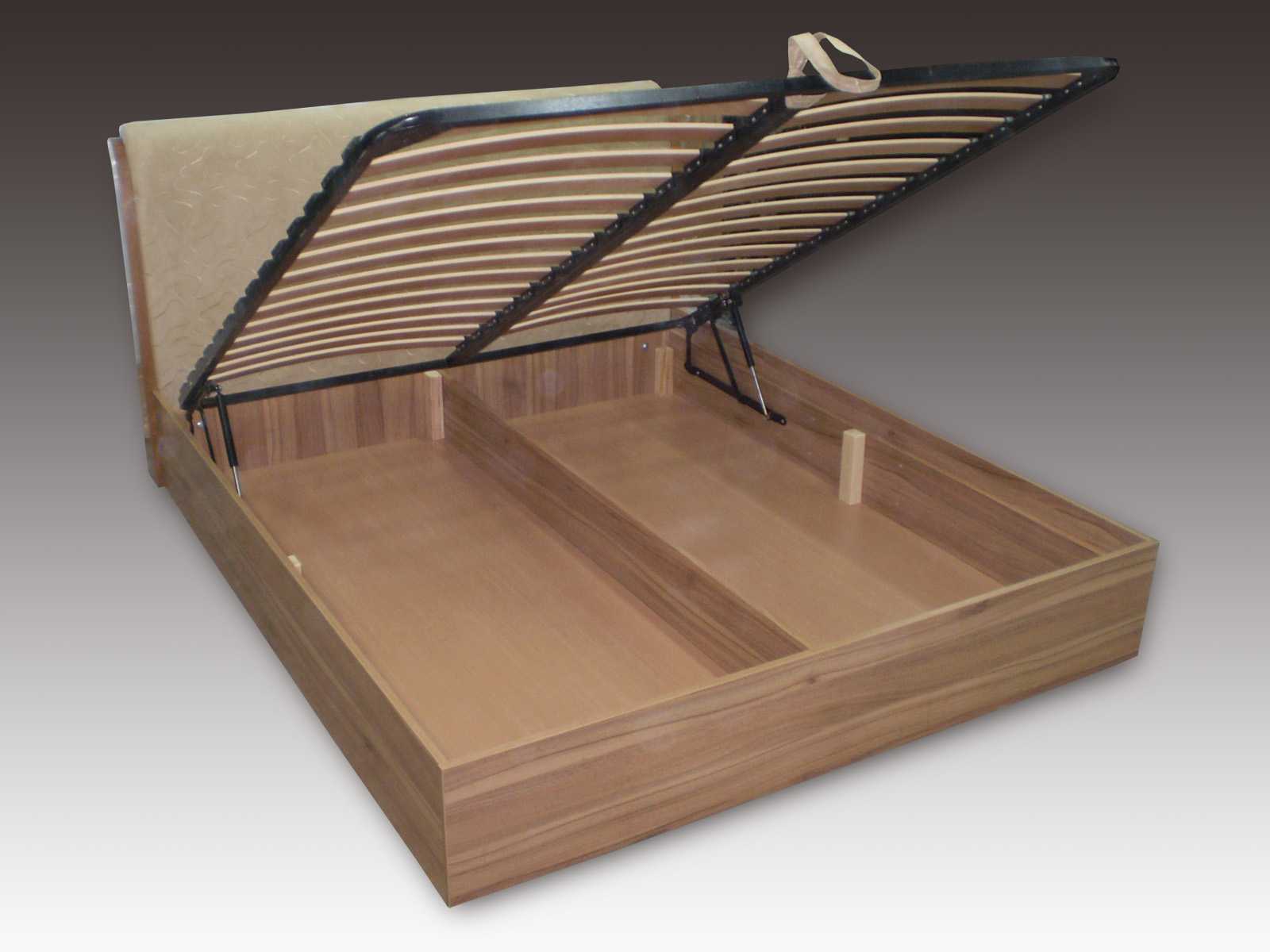 Помимо основного оснащения некоторые модели дополнены различными элементами. Одним из них является ящик с подъемным механизмом для белья. Такой вариант – прекрасное дополнение к ортопедическому основанию. Некоторая мебель имеет функцию регулировки жесткости ламелей.