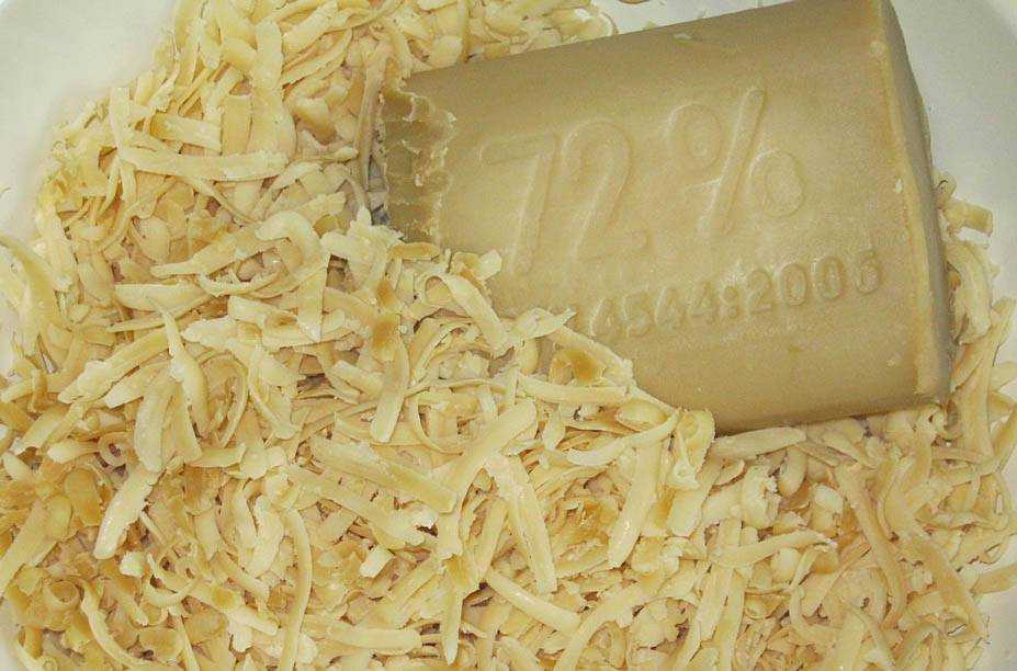 Необходимо мыло натереть, растворить стружку в воде, взбить пену. Натереть ею проблемные участки и оставляют на 10 минут. Аккуратно протереть щеткой или микрофибровой салфеткой.