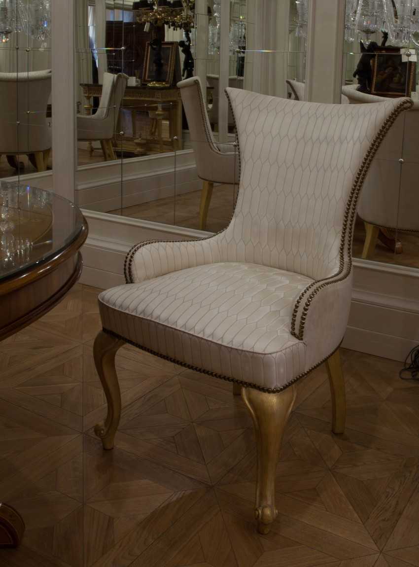 - Стул-кресло. От классического отличается подлокотниками, которые снабжены боковинами, это делает такую мебель более удобной в эксплуатации. Существует большое количество моделей, часто они предназначены для столовых или дорогих интерьеров гостиных залов.