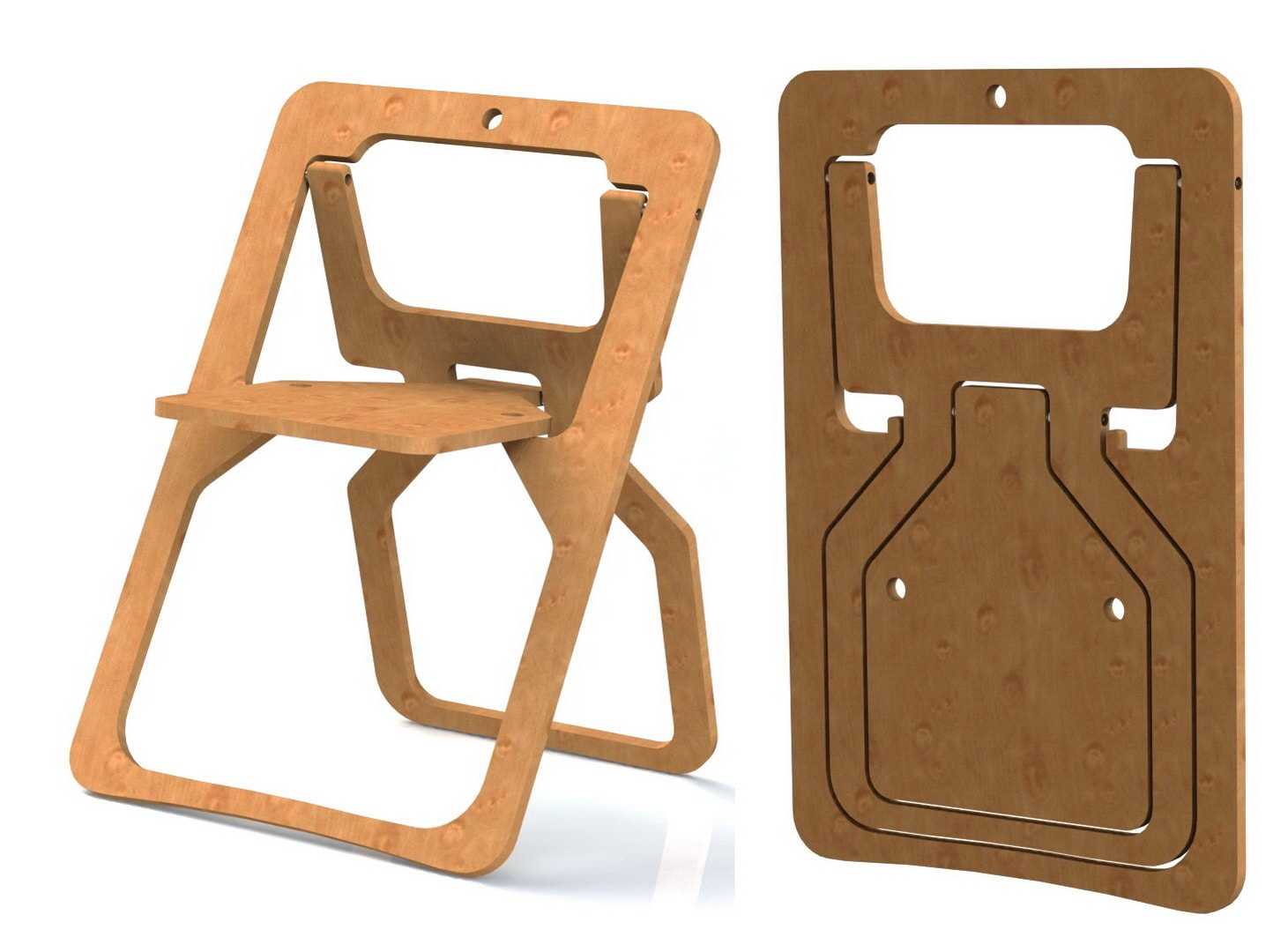 - Раскладной стул из фанеры всегда можно взять на дачу или при выезде на природу, ведь он не займет много места в багажнике, да и при хранении в кладовой. По сравнению с табуретом конструкция более сложная, но вполне может быть реализована даже мастером-новичком.