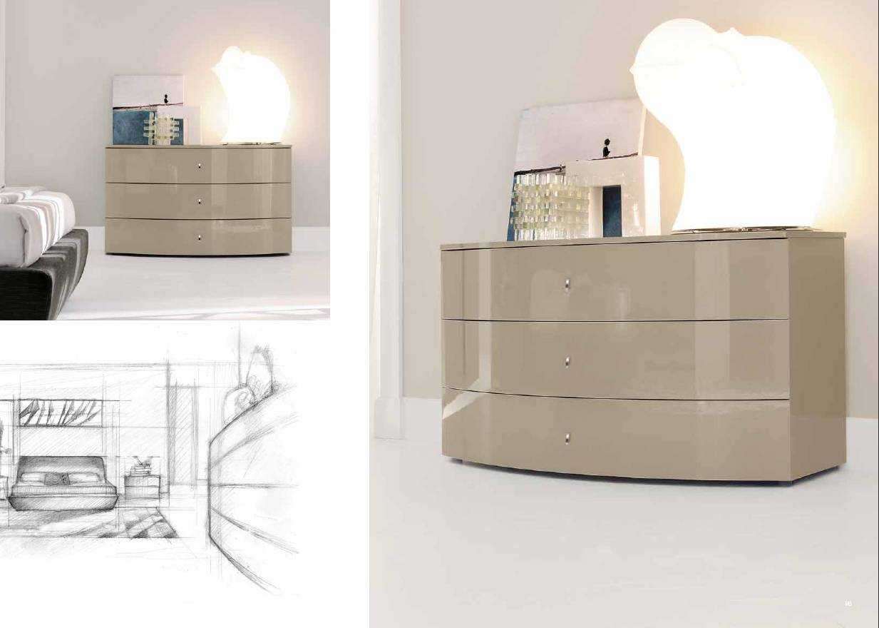 Здесь дизайнеры придерживаются черно-белой гаммы, монотонных, но лаконичных цветов и украшают комод элементами из стекла или камня. Поверхность чаще глянцевая.