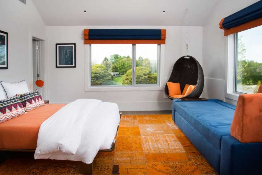 Висячее кресло имеет характерный жесткий каркас, к которому прикрепляется средство для удержания – канат или цепь. Такое кресло может быть подвешено и на пружине, что создает особые ощущения при эксплуатации. Отличительной чертой таких изделий является отсутствие опорных ножек. В зависимости от способа подвески оно может быть вращающееся или обращенное лишь в одну, выбранную, сторону. По форме они часто напоминают половинку яйца или птичье гнездо, что также придает интерьеру особый характер.