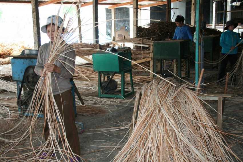 Для использования стеблей в производстве кресел их собирают в определенное время года и подвергают подготовительным мерам по доведению до пригодности. В рамках технологии подготовки ротанга обработка горячим паром является основным производственным процессом. Стебли помещают в высокую цилиндрическую емкость, в которую подают горячий пар под давлением. Молекулярная структура заготовок размягчается, приобретая эластичные свойства, после чего становится пригодной для использования. В условиях ручной обработки стебли подвергаются не пропариванию, а варке в горячей воде при помощи такой же цилиндрической емкости.