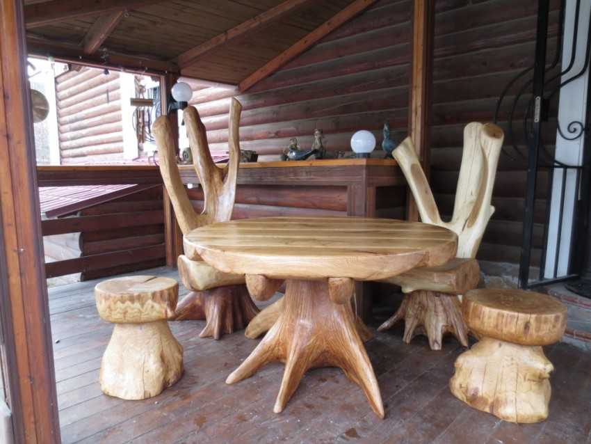 Кроме того, необычные предметы интерьера можно сделать из пней и бревен. Из гибкого сорта, например черемухи, можно сделать необычную плетеную мебель.