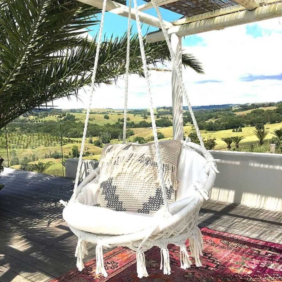 Такое подвесное кресло позволит создать на участке особую атмосферу, располагающую к умиротворению и покою