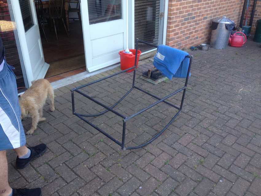 Выбирать лучше детали с эллипсовидным сечением и не забыть про необходимость использования сварочного аппарата с трубогибом. Готовая конструкция обязательно покрывается краской или же лаком с антикоррозийными свойствами. Чтобы качалку было удобно использовать, потребуется изготовить сиденье и подлокотники из доски или фанеры, после чего обтянуть их тканью или кожей.