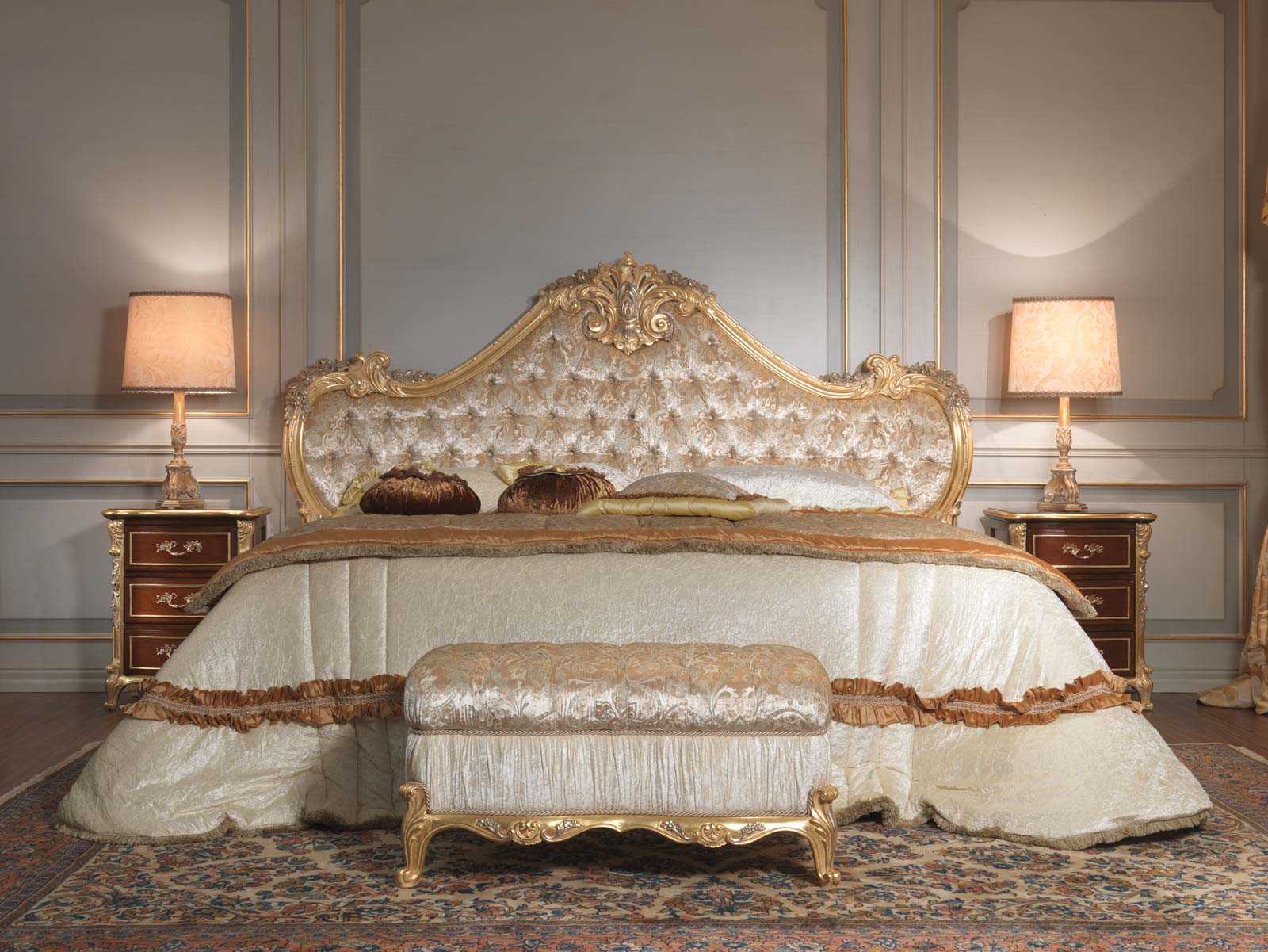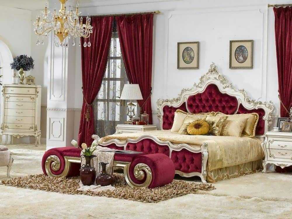 - Классика. Предпочтение стоит отдать кровати белого или светло-бежевого цвета. Фурнитура должна быть обита основной тканью. Немного позолоты на спинке добавят роскоши и торжественности.