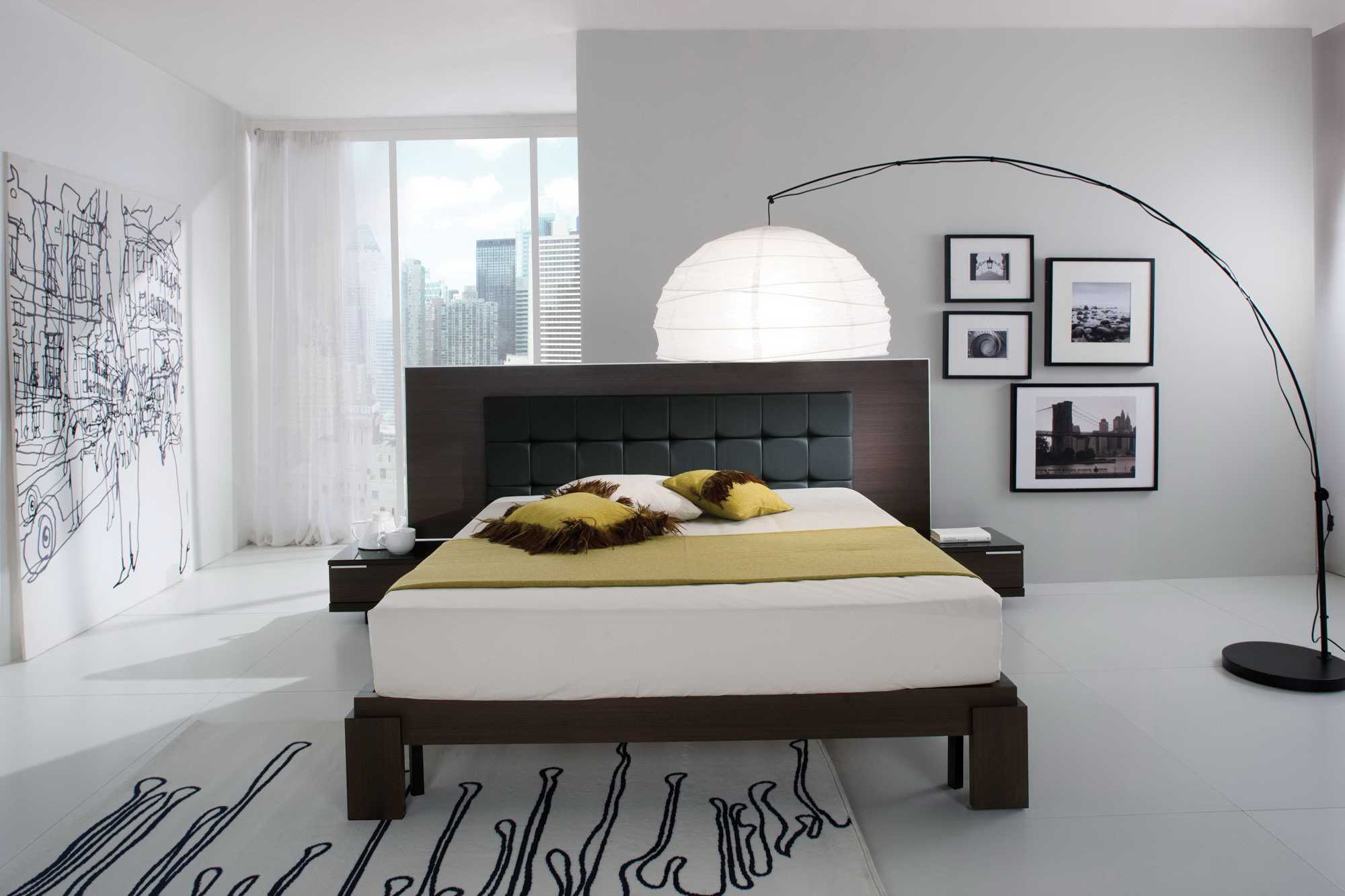 - Модерн. Подойдет кровать с высокой спинкой, закругленными углами изголовья. Цвет лучше выбрать спокойный, нейтрального оттенка, ориентируясь на общий тон комнаты.