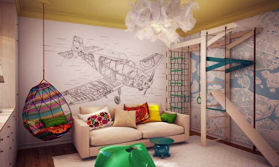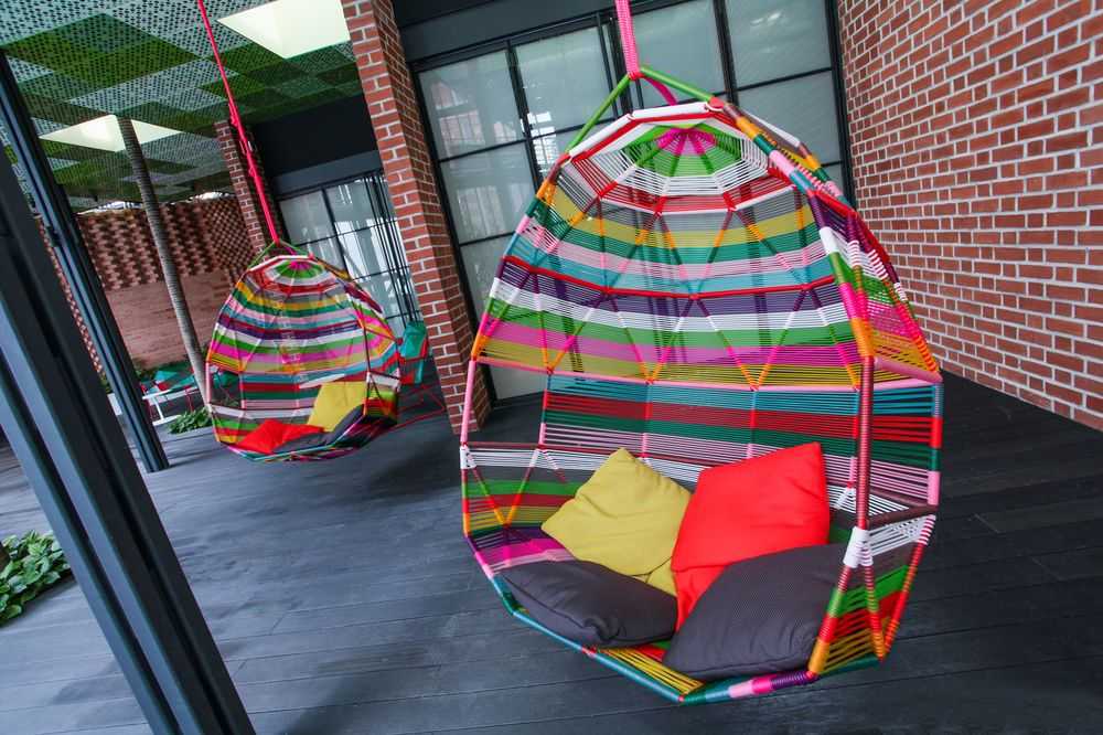 - Модерн. Будет сочетаться прозрачное кресло в форме шара либо созданный из материи небольшой гамак. Главная особенность – яркий дизайн.