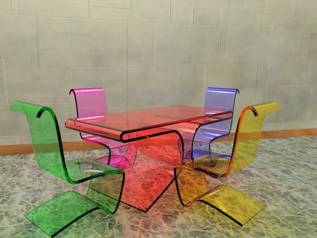 Цветовая гамма изделий весьма обширна. Вы можете подобрать мебель не полностью прозрачную, а с цветочным орнаментом или любым другим рисунком. Помимо этого, у каждого покупателя появляется возможность соединить несколько цветов и получить конструкцию с неповторимым дизайном.